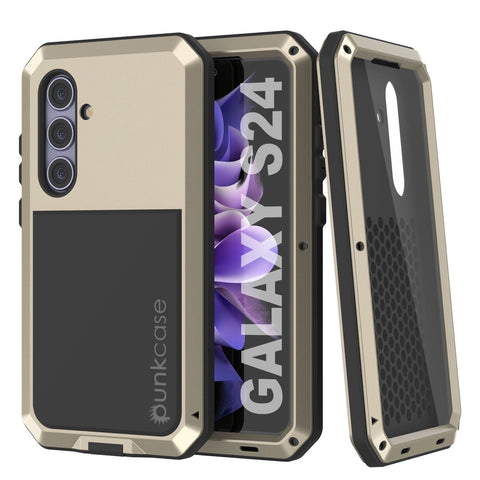 Galaxy S24 Metal Case, Heavy Duty Military Grade Armor Cover [shock proof] Full Body Hard [Gold]