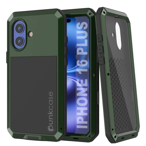 iPhone 16 Plus Metal Case, Heavy Duty Military Grade Armor Cover [shock proof] Full Body Hard [Dark Green]