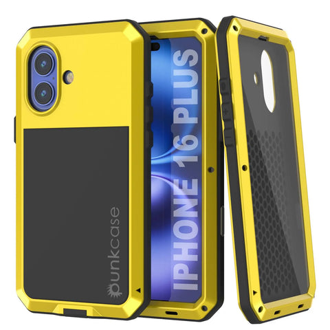 iPhone 16 Plus Metal Case, Heavy Duty Military Grade Armor Cover [shock proof] Full Body Hard [Yellow]