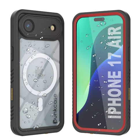 iPhone 17 Air Waterproof Case, Punkcase [Extreme Series] [Slim Fit] [IP68 Certified] [Shockproof] [Snowproof] [Dirtproof] Armor Cover W/ Built In Screen Protector for Apple iPhone 17 Air [Red]