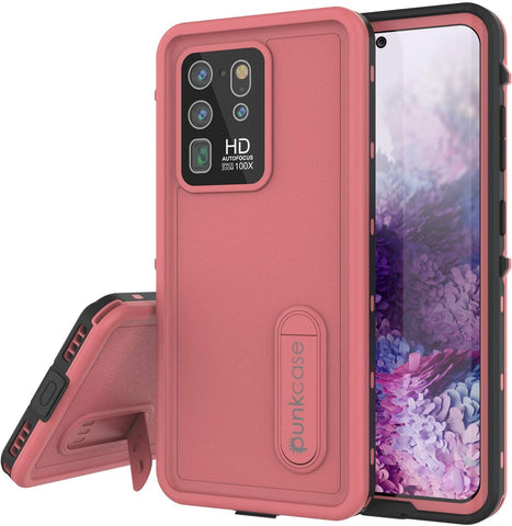 Punkcase Waterproof Case [KickStud Series] [Slim Fit] [IP68 Certified] [Shockproof] [Snowproof] Armor Cover W/Built-in Kickstand + Screen Protector Compatible W/Samsung Galaxy S20 Ultra [Pink]