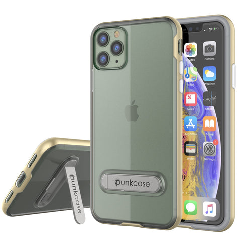 iPhone 12 Pro Case, PUNKcase [LUCID 3.0 Series] [Slim Fit] [Clear Back] Protective Cover w/ Integrated Kickstand, Anti-Shock System & PUNKSHIELD Screen Protector for Apple iPhone 12 Pro [Gold]