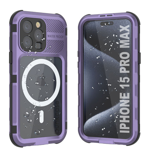 iPhone 15 Pro Max Metal Extreme 2.0 Series Aluminum Waterproof Case IP68 W/Buillt in Screen Protector [Purple]
